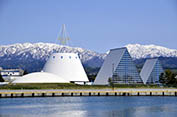 魚津埋没林博物館は、魚津の海岸で出土した約2000年前のスギ原生林跡で特別天然記念物の“魚津埋没林”をその場で保存・展示しています。また魚津市の名勝“蜃気楼展望地”にあり、運が良ければ施設内から実際の蜃気楼を見ることもできます。ハイビジョンホールでは、蜃気楼のほか、魚津に生育する不思議なスギ巨木“洞杉”の映像ソフトを300インチ大画面で上映しています。富山湾の不思議と出会える当館へ、ご来館をお待ちしています。