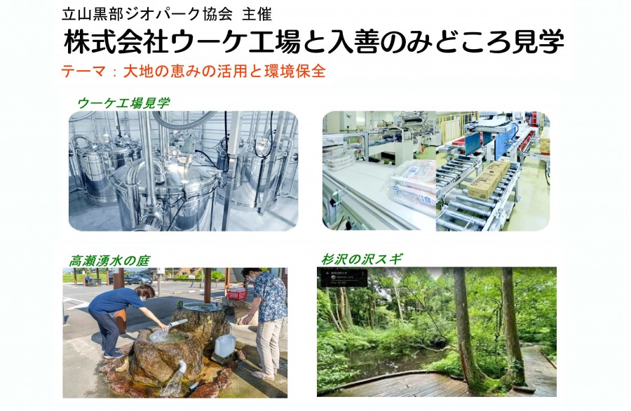 黒部川扇状地の清らかな水と地元のお米という大地の恵みを生かした、安心でおいしいごはんのクリーンな製造工程を見学した後、入善海洋深層水で浄化し鮮度が保たれた牡蠣を賞味し、午後は入善の清らかな水と緑のみどころを巡るものです。
