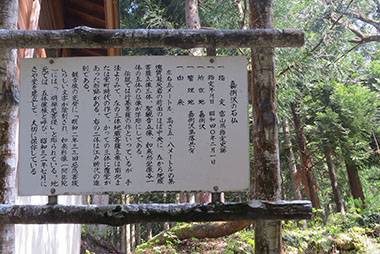 二階建てほどの鞘堂の中に大きなやや黄色みを帯びた灰色の巨岩があり、正面に5体の仏像が刻まれている。石仏は南北朝又は室町時代かといわれている。山の中腹に古い時代から人が住んでいた嘉例沢地区も人家がなくなり、鞘堂と近くに宮が残るのみとなった。